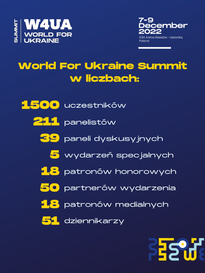 – Szczyt World For Ukraine pokazał, że ekosystem pomocowy dla Ukrainy złożony z różnych podmiotów jest niezbędny, działa i rozwija się. Potrzebuje on jednak optymalizacji, koordynacji i wzmocnienia. Rządy, samorządy, pozarządowe organizacje pomocowe, ludzie dobrej woli otrzymali w Jasionce przestrzeń do spotkania, poznania się, rozmowy, wymiany doświadczeń i nawiązania współpracy. Otrzymaliśmy wiele sygnałów, że misja W4UA powinna być kontynuowana – podkreślił Bartosz Staniszewski z Komitetu Organizacyjnego W4UA.