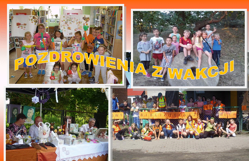 Pozdrowienia z Bojadeł.Na pocztówce umieszczono akcje organizowane przez bibliotekę w Bojadłach w czasie wakacji 2015.Zdjęcia przedstawiają: