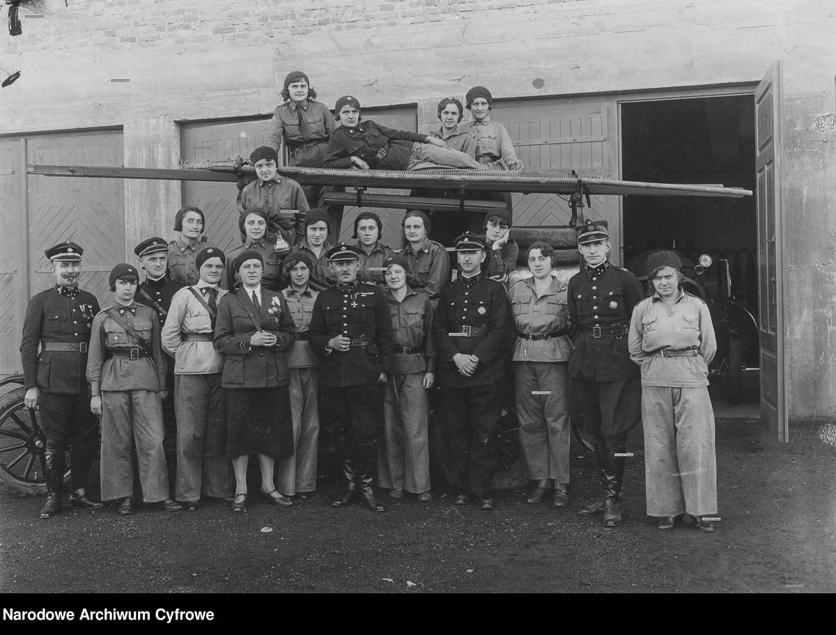 Autor/źródło: Narodowe Archiwum CyfroweGenezy żeńskiej służby pożarniczej można upatrywać właśnie w organizacjach samarytańskich i skautowskich, powoływanych do niesienia pierwszej pomocy, w których kobiety pełniły role pielęgniarek i sanitariuszek. Podczas IX Krajowego Zjazdu Strażackiego odbywającego się w sierpniu 1900 roku we Lwowie zaproponowano, by przy ochotniczych strażach pożarnych tworzone były żeńskie oddziały samarytańskie. Z kolei w 1921 roku nakładem Biblioteki Strażackiej ukazał się "Katechizm dla strażackich oddziałów samarytańskich" autorstwa Antoniego Szczerbowskiego, w którym nakreślał rolę polskich kobiet i dziewcząt w strażach pożarnych. Wyjaśniał, jak należy dbać o miejsce udzielania pierwszej pomocy, metody i środki zabezpieczenia medycznego.