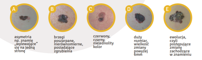 Czerniakowe Abecadło, czyli kryteria rozpoznania czerniaka, to proste do zapamiętania cechy charakterystyczne, które pozwalają na szybkie rozpoznanie choroby.