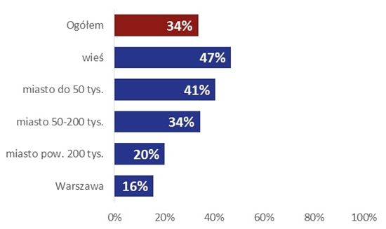 Organizacji „sportowych” zdecydowanie najwięcej jest na wsi i w małych miastach. Spośród wiejskich fundacji i stowarzyszeń aż 47% działa w obszarze sportu, turystyki, rekreacji i hobby. W małych miastach (do 50 tysięcy mieszkańców) organizacje „sportowe” to 41% sektora pozarządowego. Dla porównania, w największych miastach (powyżej 200 tysięcy mieszkańców) sport, turystyka, rekreacja i hobby to główny obszar działań dla 20% fundacji i stowarzyszeń, a w Warszawie tylko dla 16%.
