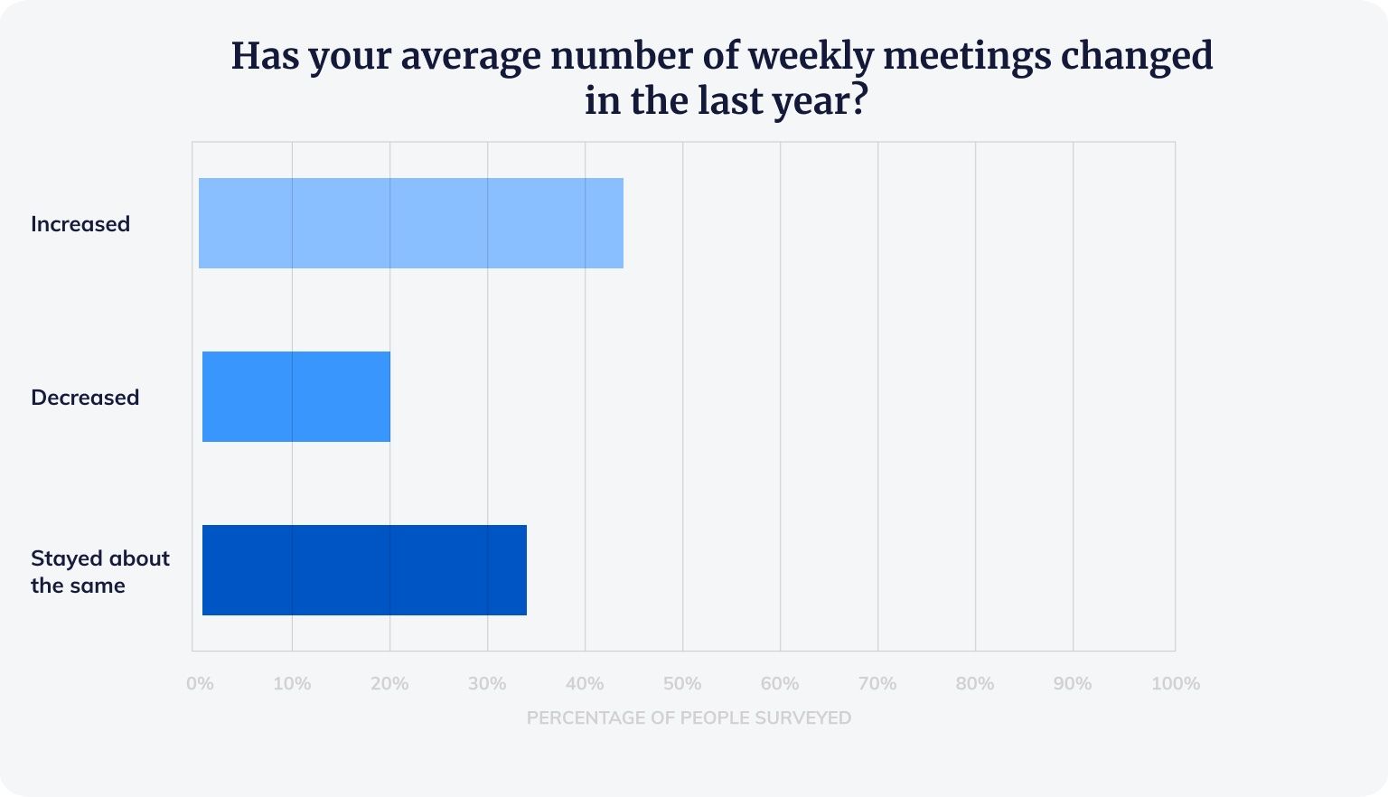 Ostatecznie 34% ludzi twierdzi, że ich harmonogram spotkań przeszkadza w wykonywaniu ich głównej pracy, a 61% mówi, że spotkania poważnie zakłócają ich koncentrację.