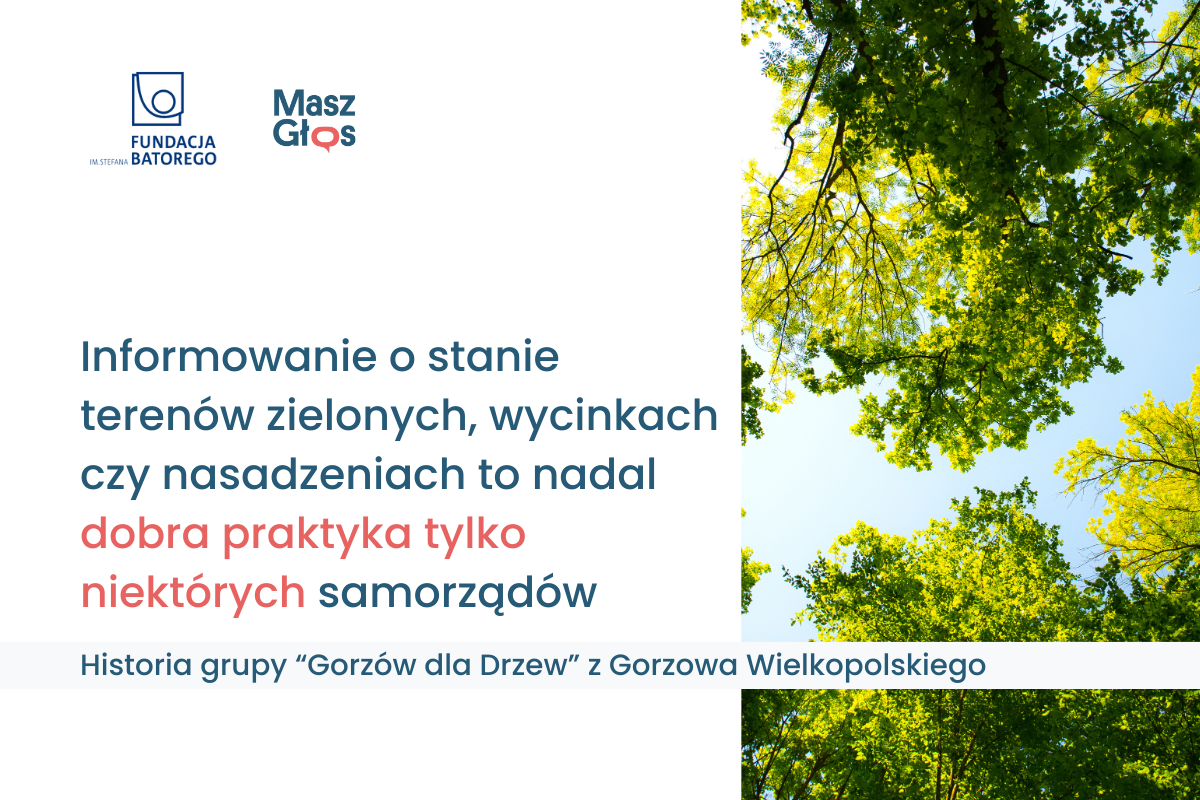 – Informowanie o stanie terenów zielonych, wycinkach czy nasadzeniach to nadal dobra praktyka tylko niektórych samorządów, a nie obowiązek wynikający z prawa – mówi Małgorzata Łosiewicz, koordynatorka akcji Masz Głos.