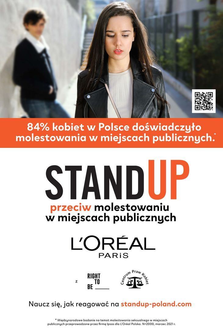 Pokazały to badania firmy Ipsos przeprowadzone w 2021 r. dla marki L’Oréal Paris. Marka wraz z fundacją Centrum Praw Kobiet rozpoczyna teraz kampanię społeczną „Stand Up przeciw molestowaniu w miejscach publicznych”. Honorowym patronem kampanii został Prezydent m.st. Warszawy.