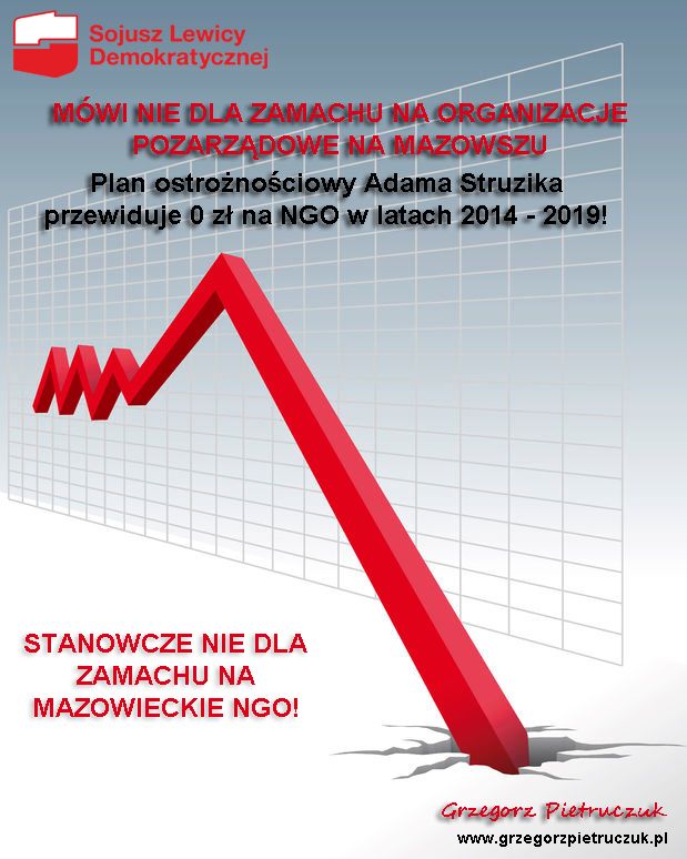 W proponowanym Programie Ostrożnościowym Województwa Mazowieckiego środki na współpracę z organizacjami pozarządowymi określone są na poziomie 0 zł. W latach 2014 – 2019. Czy jednak uczciwe jest de facto karanie organizacji dobroczynnych za lata fatalnego stylu zarządzania środkami publicznymi na Mazowszu? - pyta Grzegorz Pietruczuk, Radny Sejmiku Województwa Mazowieckiego.