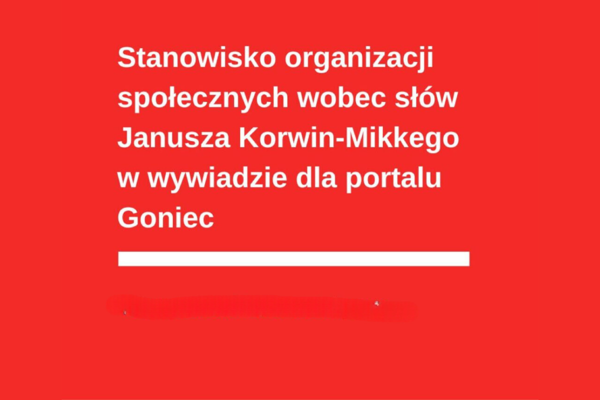 Stanowisko organizacji społecznych wobec słów Janusza Korwin-Mikkego w wywiadzie dla portalu Goniec