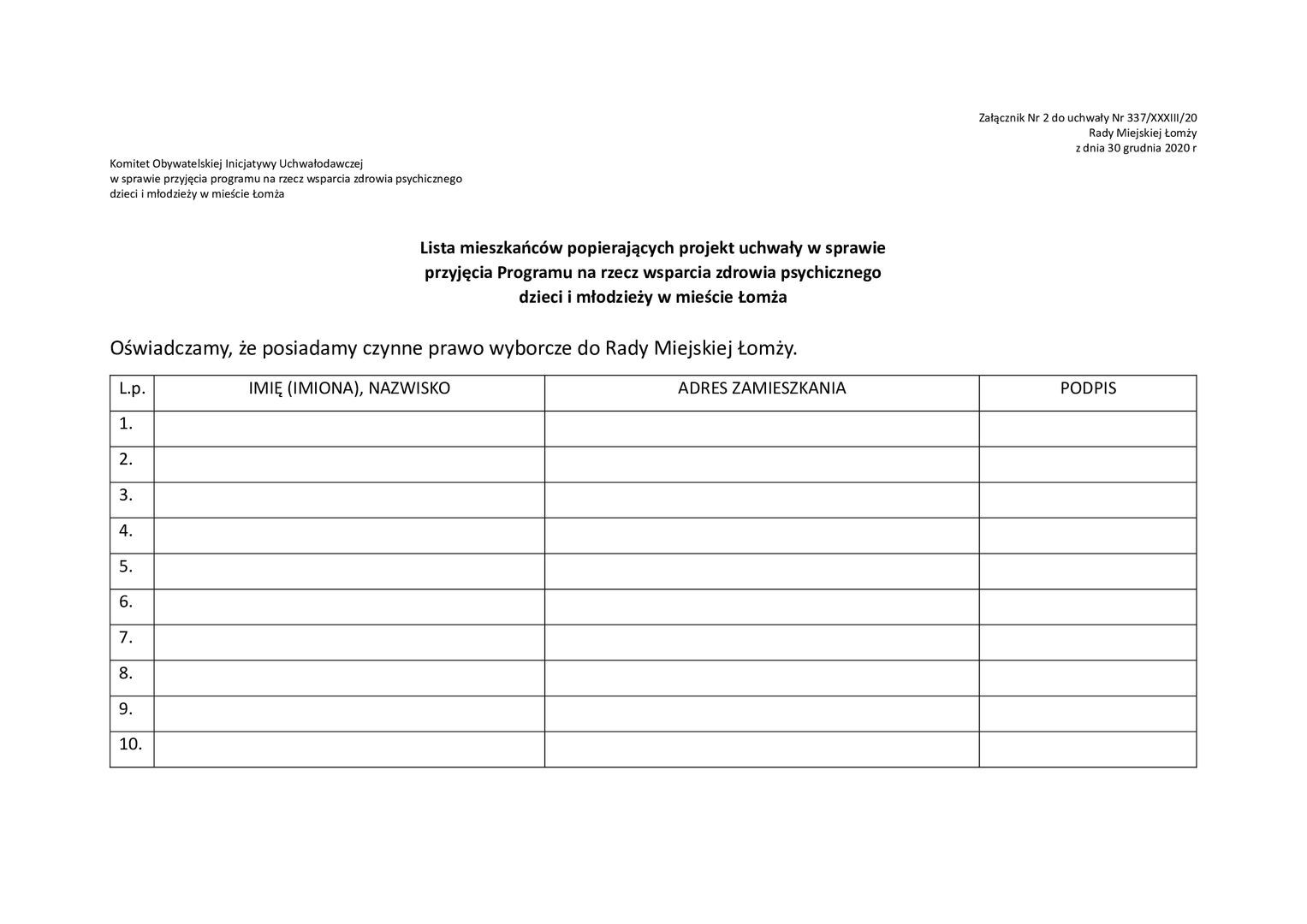 - Złóż swój podpis: Każdy podpis zbliża nas do osiągnięcia celu i poprawy sytuacji zdrowia psychicznego młodzieży w Łomży.