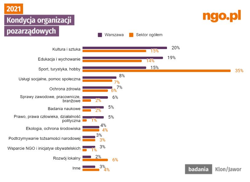 Tekst został opracowany na podstawie badań „Kondycja organizacji pozarządowych 2021” przeprowadzonych przez Stowarzyszenie Klon/Jawor.