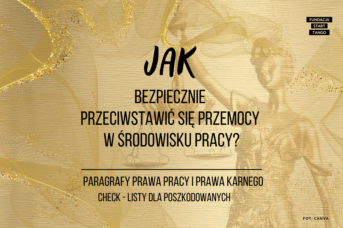 Jak w oparciu o polskie prawo i polskie realia możemy bezpiecznie przeciwstawić się przemocy w środowisku pracy? O tym przeczytacie w publikacjach Fundacji Start Tango, pisanych z punktu widzenia osób pokrzywdzonych. Pierwsze z nich, dotyczące prawa karnego i prawa pracy są już dostępne na stronie internetowej organizacji.