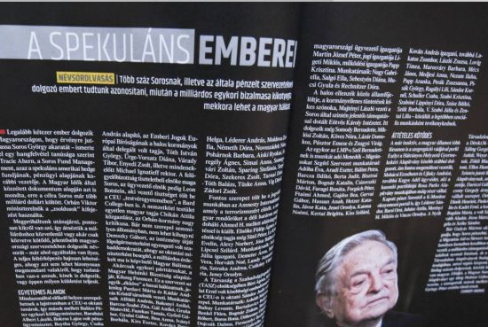 Lista 200 „agentów Sorosa” w tygodniku Figyelő. (Fot. Nora Koves)