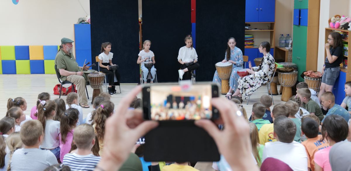 Kolejnym punktem programu był występ Dziewczyńskiej Grupy Bębniarskiej prowadzonej pod opieką Tomasza Kozdraja. Zajęcia przygotowujące do występów również odbywają się w ramach projektu „Włączone”, a od niedawna także ze środków Fundacji Drzewo i Jutro jako część czwartej edycji projektu „Obcy? Zbliżenia”. Biorą w nich udział także dziewczynki mieszkające w łukowskim ośrodku. Po zakończonym występie uczniowie i uczennice SP nr 7 mogły wziąć udział w warsztatach bębniarskich.