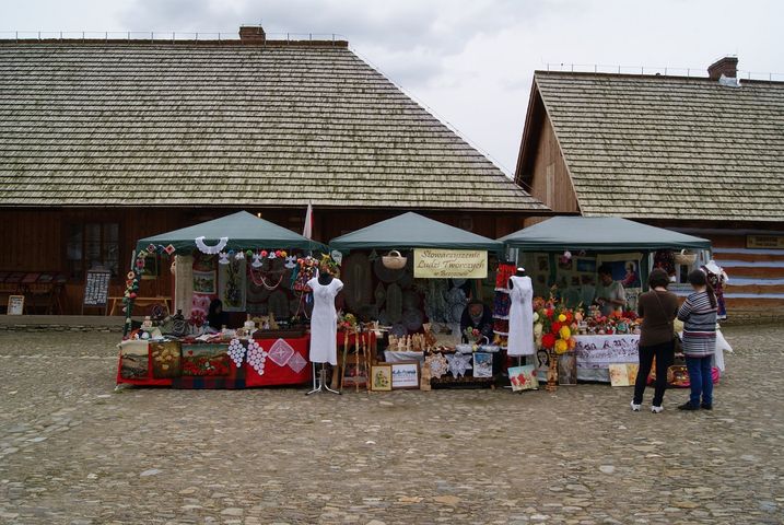 Tradycyjnie też w wielu obiektach Skansenu, zarówno w starszej części, jak i na „Galicyjskim Rynku” przewodnicy skansenowscy pełnili dyżury i mogliśmy je nieodpłatnie zwiedzać. Podczas całego Jarmarku odbywały się pokazy rzemiosła, kiermasz polskiego rękodzieła i sztuki ludowej oraz degustacje potraw regionalnych przygotowanych przez Koła Gospodyń Wiejskich. Rękodzieło prezentowane przez naszych członków spotkało się z ogromnym uznaniem, zarówno zwiedzających, jak i organizatorów /otrzymaliśmy podziękowanie za udział oraz zaproszenie na kolejny Jarmark Folklorystyczny wraz z zaproszeniem do zorganizowania pokazu mody w stylu „folk”- autorstwa M. Chmiel/