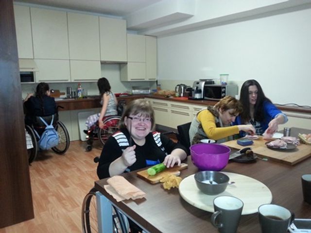 Pozostali uczestnicy Akademii przygotowują właśnie obiad w dwóch treningowych kuchniach. Większość z nich ma niedowład nie tylko nóg, ale i rąk. Usztywnione palce stawiają opór zmuszane do obierania ziemniaków lub krojenia jarzyn. Nie daliby rady, gdyby nie dostosowane do potrzeb „wózkowiczów” sprzęty i meble kuchenne, m.in. kuchenki, zmywarki, blaty stołów.