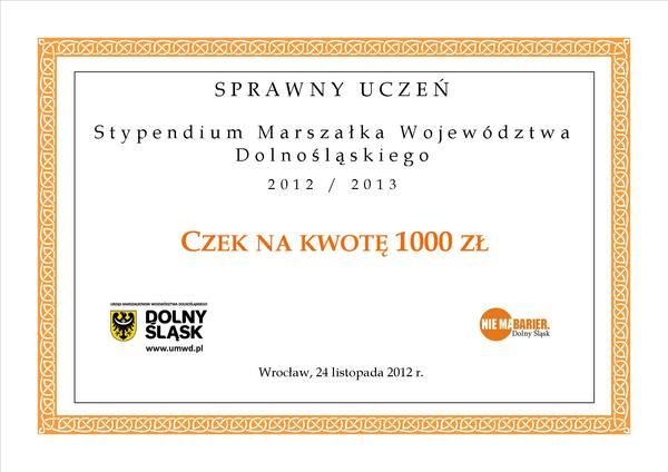 Wysokość stypendium: 1000 zł.