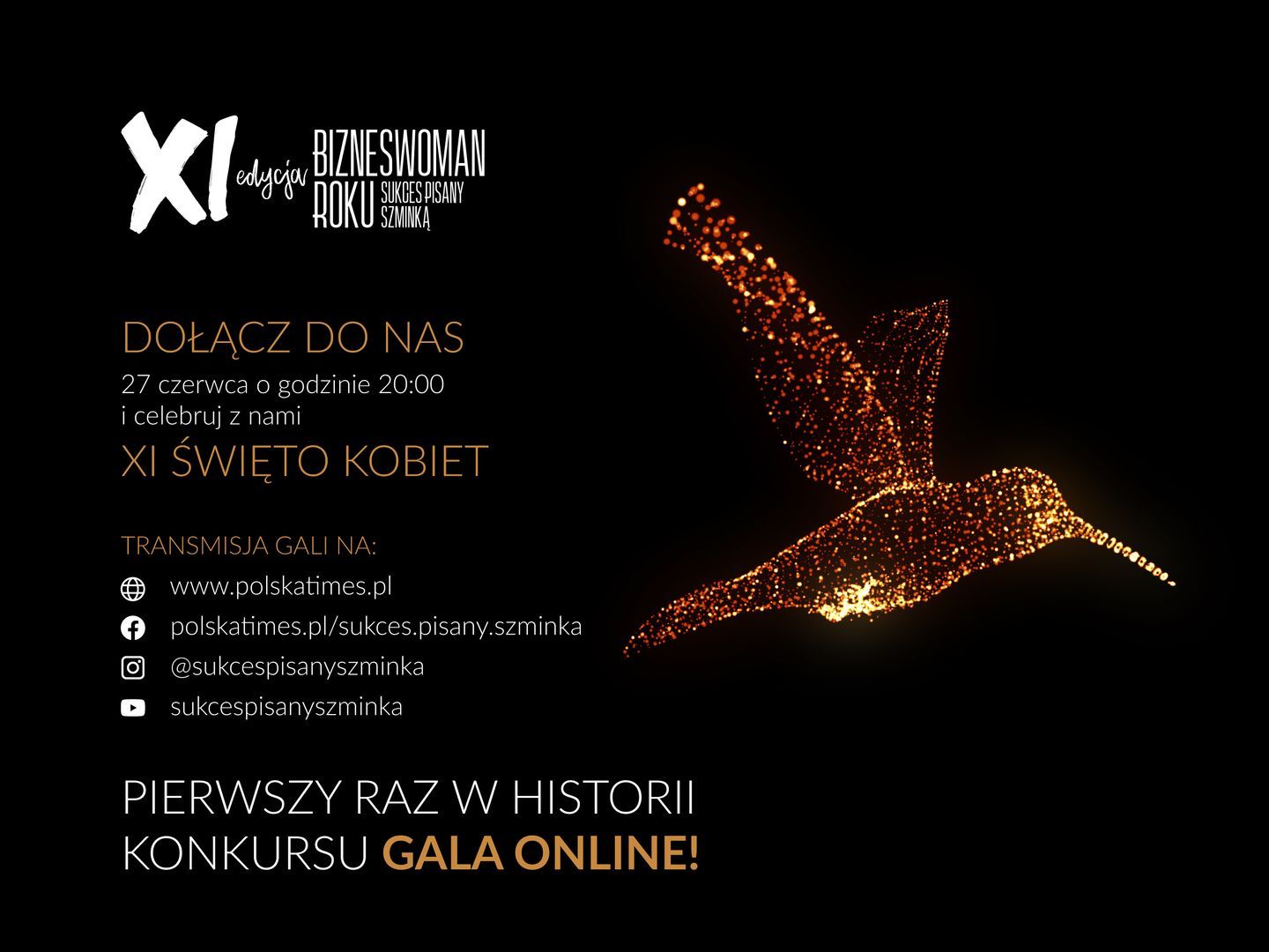 Uroczyste wręczenie nagród odbędzie się już w sobotę o godz. 20:00 podczas gali transmitowanej online. Transmisja dostępna będzie na stronie https://youtu.be/dXRjW3vsjOg oraz w mediach społecznościowych Fundacji Sukces Pisany Szminką.