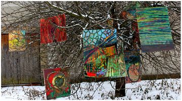 Jak mówi artysta. Drzewo w swej konstrukcji jest już dziełem natury i samo w sobie jest piękne. Wzbogacone o barwę z obrazów staje się dostojne. Obrazy zaczynają żyć innym bytem, pełnić funkcję dojrzałych owoców. Te „owoce” to strój jakim się opasa dana jabłoń i ma ona charakter świąteczny. Dlatego też upodabnia się do choinki, goszczących w naszych domach podczas tych świąt. To czczenie iglaka tkwi w człowieku od wieków, w różnych kulturach i społecznościach wyraża się je w specyfice danego regionu lub kraju. Drzewo jest magiczne i łączy ze sobą trzy światy. Poprzez korzenie których nie widać i które sięgają głęboko w ziemię - ze światem zmarłych. Poprzezpień - ze światem ówczesnym, a dzięki gałęziom - z niebem. A ponadto służy człowiekowi w różnych dziedzinach życia. Więc Świąteczne Drzewo Abstrakcji będzie inspirować do subiektywnych odczuć wizualnych.