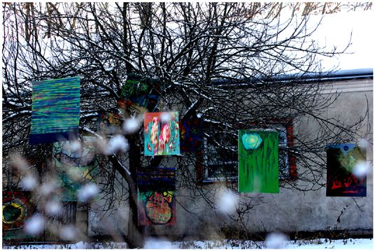 Dawid Kędzierski nie przypadkowo wybrał czas i miejsce. Pejzaż zimowy wraz z atmosferą świąt jest aluzją do świątecznej choinki, oraz wyrażenia samego siebie w sposób niekonwencjonalny. Autor odnalazł drzewo, które spełniało jego oczekiwania prezentacji malarskiej. I było w swej budowie pełną formą. Stało samotnie, więc nie miało konkurencji i jako tło ekspozycji służył mu budynek Domu Pasterza. Dodatkowym aspektem do prezentacji dzieł stał się otaczający śnieg, który wzbogacał kontrast. Dzięki czemu obrazy mocno korespondowały z widzem.