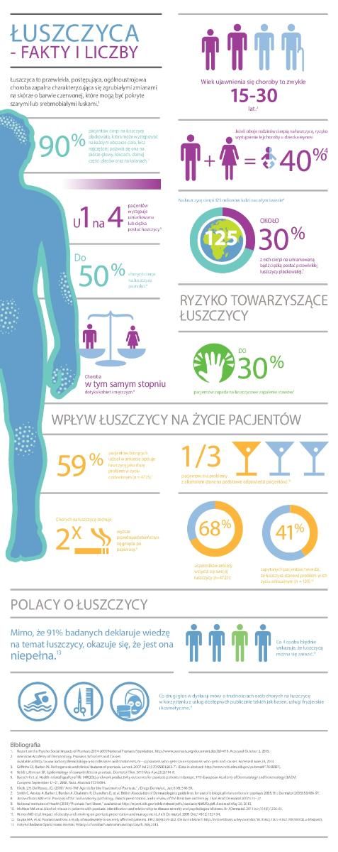 Łuszczyca dotyka od 2 do 3% populacji, co oznacza, że może dotyczyć ponad 1 miliona Polaków. Jest to ciężka zapalna choroba autoimmunologiczna, która objawia się powstawaniem zmian skórnych w postaci grudek pokrywających się srebrną łuską. Zmiany łuszczycowe bolą i swędzą, a w najcięższych przypadkach mogą zajmować całą powierzchnię skóry. Kilka tysięcy osób w naszym kraju cierpi na jej ciężką postać, praktycznie uniemożliwiającą normalne funkcjonowanie. U części pacjentów dochodzi również do zajęcia stawów (łuszczycowe zapalenie stawów), co może prowadzić do niepełnosprawności.