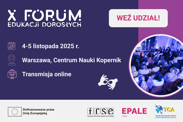 Można się jeszcze zarejestrować, do czego serdecznie zachęcam: https://epale.ec.europa.eu/pl/blog/zapraszamy-na-x-forum-edukacji-doroslych.