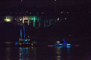 Jedną z ostatnich, a zarazem główną i najbardziej wyczekiwaną, atrakcją Święta Wisły była parada jednostek wiślanych. O godzinie 19, na równi z zachodzącym słońcem, z Portu Czerniakowskiego zaczęły niespiesznie wyłaniać się, udekorowane oraz efektownie oświetlone, jednostki pływające różnej maści. Jednocześnie każda z nich została przedstawiona publice przez prowadzącego ulokowanego na InfoBarce przy Cyplu Czerniakowskim. Widzowie, okupując betonowe schodki i trawiaste stoki nabrzeża, obserwowali, jak obiekty stopniowo przesuwają się w stronę Mostu Poniatowskiego. Po zachodzie Słońca, setki lampek, diod i świateł, odbijające się w ciemnych falach rzeki, na pewno na długo zapadną w pamięć każdemu, kto miał okazję obserwować to niecodzienne widowisko.