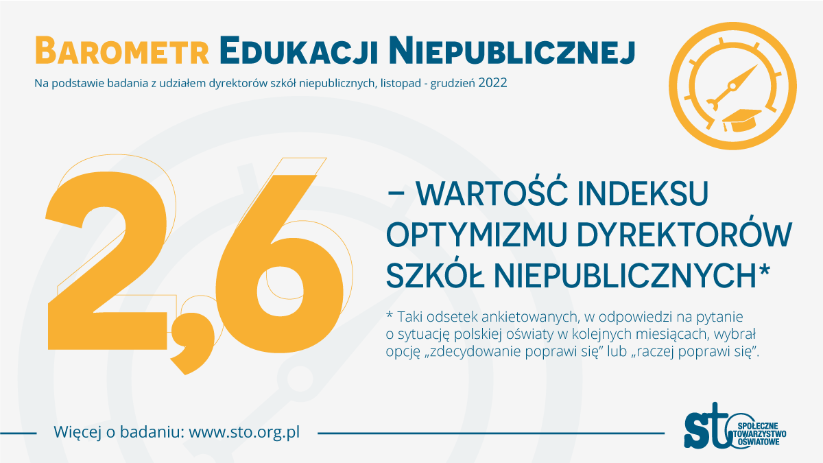 Inflacja, lex Czarnek 2.0, deficyty kadrowe w oświacie – to aktualnie główne źródła zmartwień dyrektorów szkół niepublicznych. Przed końcem roku ich nastroje sprawdziło Społeczne Towarzystwo Oświatowe (STO). Była to kolejna edycja badania „Barometr Edukacji Niepublicznej”.