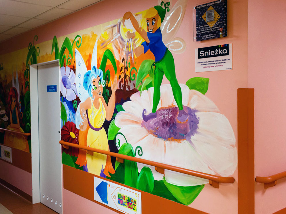 Dzięki realizowanej przez Fabrykę Farb i Lakierów Śnieżka SA, autorskiej akcji społecznej "Dziecięcy świat w kolorach", wnętrza kolejnych oddziałów dziecięcych szpitali w całej Polsce zyskują przyjazny, bajkowy wygląd. W ramach trwającego od 2005 roku programu artystycznie odmalowanych zostało już 15 placówek: w Dębicy, Rzeszowie, Sosnowcu, Gdańsku, Krakowie, Wrocławiu (dwukrotnie), Warszawie, Poznaniu, Łodzi, Lublinie, Katowicach, Szczecinie, Oświęcimiu i Zabielu Wielkim k. Ostrołęki.