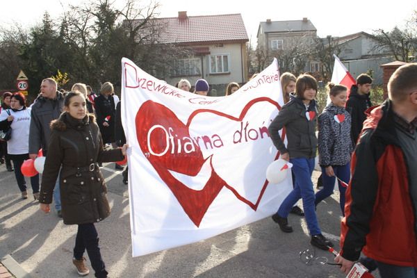 Sztafeta zgromadziła ponad sześćdziesiąt osób, które w niedzielne przedpołudnie zebrały się przed budynkiem Urzędu Gminy i Miasta, by wspólnie uczcić święto narodowe i promować wolontariat. Uczestnicy otrzymali od wolontariuszy serduszka i balony w barwach narodowych. Sztafecie przewodniczył Burmistrz Gminy i Miasta w Drzewicy pan Janusz Reszelewski, honorowy patron przedsięwzięcia. Wszystkich uczestników powitał Prezes Zarządu DCW "Ofiarna dłoń" Dominik Niemirski. W swoim wystąpieniu poinformował o założeniach akcji i zaznaczył, że podobne sztafety odbywają się także w innych miejscowościach. Dokładnie o godzinie 11.11 biało-czerwony marsz wyruszył na trasę. Drzewiczanie przeszli ulicami miasta, pokonując około dwóch kilometrów. Patronat medialny sprawował Tygodnik Opoczyński oraz Radio Plus Radom.