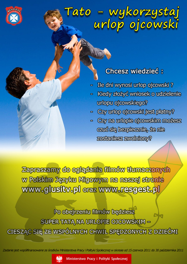 Rzeszowski Klub Sportowy Głuchych RES-GEST w okresie od czerwca do października 2011 r. prowadzi kampanię informacyjno–promocyjną „Tato – wykorzystaj urlop ojcowski”, zachęcając niesłyszących ojców do świadomego uczestnictwa w opiece nad nowo narodzonym dzieckiem. Zadanie wykonywane jest za pośrednictwem serwisu internetowego www.glusitv.pl, gdzie informacje przekazywane są w 80% w formie wizualizowanej i tłumaczonej na język migowy.