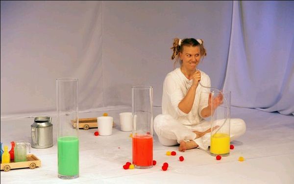 – Tak powstało „Rozplatanie tęczy” – mówi aktorka. – To jest spektakl o kolorach. Dla dzieci rocznych czy dwuletnich kolory są wielką magią. Niby banalna rzecz – pokolorowanie wody farbą, a wywołuje niewyobrażalne emocje. Poliki i uszy purpurowieją, dzieci wstają i nie mogą usiedzieć w jednym miejscu.