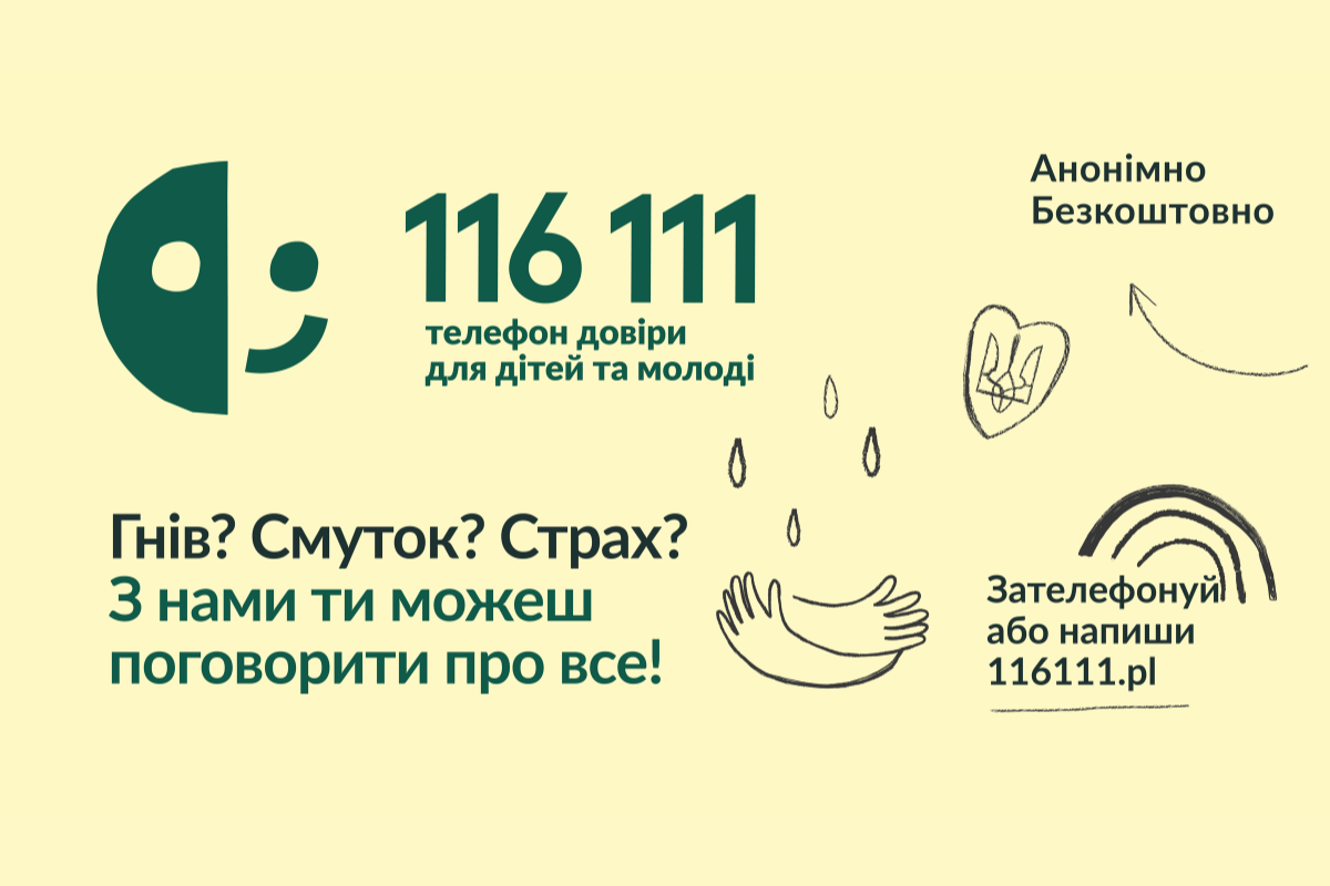 Телефон довіри 116 111 допомогає дітям та молоді з України, які перебувають у Польщі.