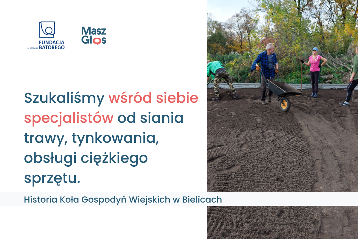 W tej historii jest rzutka sołtyska, burmistrzyni i Koło Gospodyń Wiejskich w Bielicach, które marzyło o wiacie i ławkach, aby móc robić zajęcia dla mieszkańców wsi. Społeczność nie miała zewnętrznego miejsca na spotkania, a teren tuż przy świetlicy, wyremontowanej w 2020 roku, pozostawał niezagospodarowany, zaniedbany i z prowizorycznym ogrodzeniem. Inicjatywa została opisana w „Atlasie dobrych praktyk” akcji Masz Głos Fundacji Batorego.