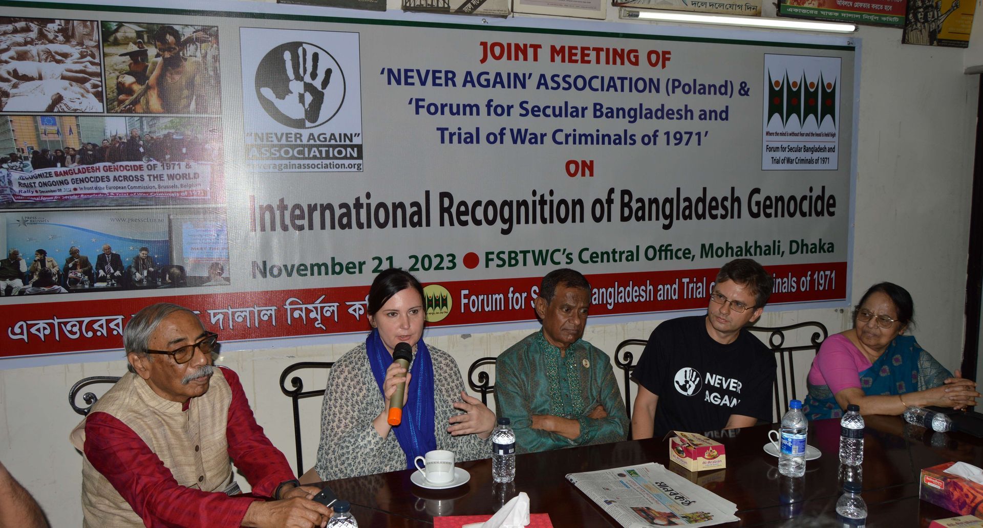 On 21 November, members of the ‘NEVER AGAIN’ Association Natalia Sineaeva and Rafal Pankowski presented the Association’s activities at a special meeting hosted in Dhaka by Shahriar Kabir, an eminent Bangladeshi writer and filmmaker, the founder of the Forum for Secular Bangladesh and Trial of War Criminals of 1971. The meeting was followed by a screening of a documentary on the Bangladesh genocide.