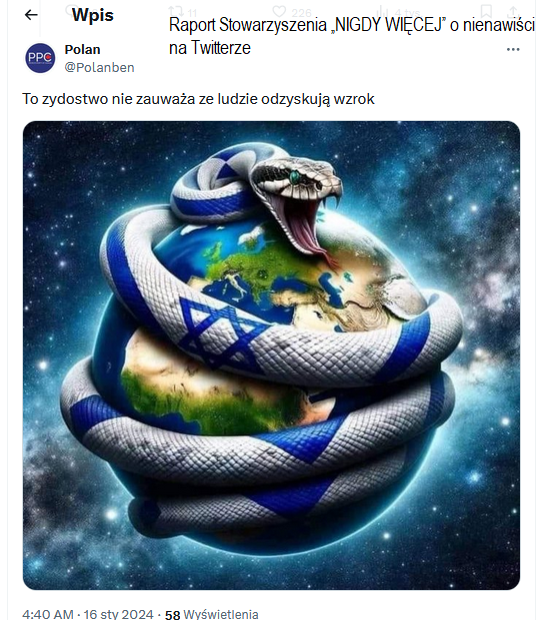 The ‘NEVER AGAIN’ Association, Poland’s leading anti-racist organization, documented and informed X of 343 examples of extreme hate speech addressed to a Polish audience on the platform since August 2023. The removal rate has been a mere 10 percent, which means that 90 percent of the reported cases have remained on the platform.