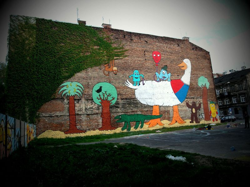Diegomiedo, artysta pochodzący z Neapolu i grupa dzieci ze stowarzyszenia GPAS namalowały wielką kaczkę w towarzystwie innych zwierząt i stworków. Dzieło powstało na początku maja na ścianie kamienicy przy ul. Brzeskiej 14a. Duży wpływ na projekt obrazu miały dzieci. Diegomiedo poddał się ich wyobraźni nadzorując wykonanie muralu.