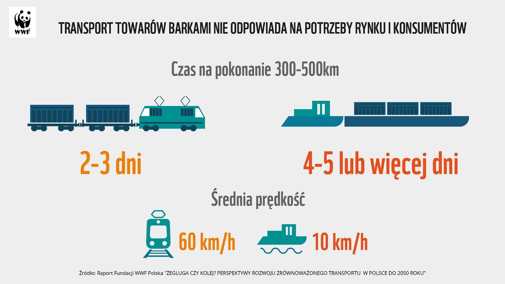 Fundacja WWF Polska opublikowała raport pt. „Żegluga czy kolej? Perspektywy rozwoju zrównoważonego transportu w Polsce do 2050 roku”, z którego jednoznacznie wynika, że inwestowanie w drogi wodne jest zupełnie nieopłacalne i może mieć katastrofalne skutki dla naszego środowiska. Transport kolejowy jest szybszy, pewniejszy i dużo bardziej przyjazny dla naszej planety.