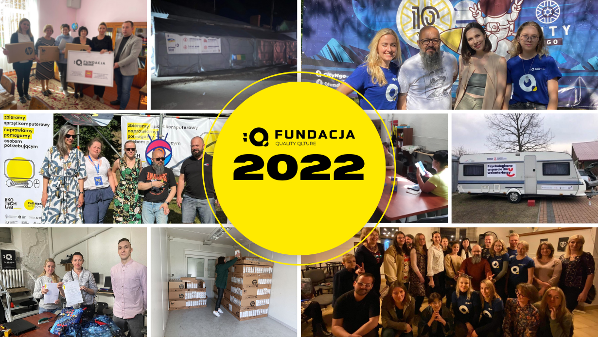 Działania Fundacji Q w 2022 roku skupiły się na wsparciu osób w kryzysie uchodźczym oraz obywateli Ukrainy, którzy przebywają na terenie swojego kraju i potrzebują pomocy. Pierwsze „pomocowe zrywy” rozpoczęły się w siedzibie Fundacji Q w Nowej Dębie, a wtórowało im wsparcie tamtejszego samorządu oraz osób prywatnych. Pierwsze akcje to pomoc w znalezieniu miejsc noclegowych dla uchodźców, podstawowych elementów wyposażenia ich nowych miejsc pobytu, ubrań, artykułów spożywczych itp. Sukcesem zakończyła się też zbiórka elektrośmieci, które to z kolei zostały przekute na finanse i trafiły na Ukrainę.