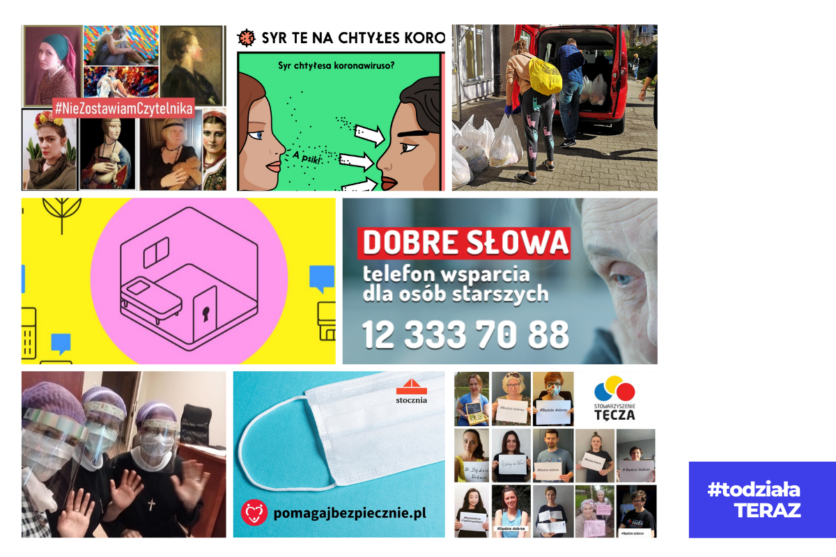 W czasie pandemii organizacje społeczne nie przestały działać. Pomagają nam przetrwać ten trudny czas. Udzielają wsparcia najbardziej potrzebującym: osobom z niepełnosprawnościami, w kryzysie bezdomności oraz ofiarom przemocy. Rozwożą posiłki seniorom, szyją maseczki dla służb medycznych, publikują materiały edukacyjne i przenoszą kulturę do Internetu.