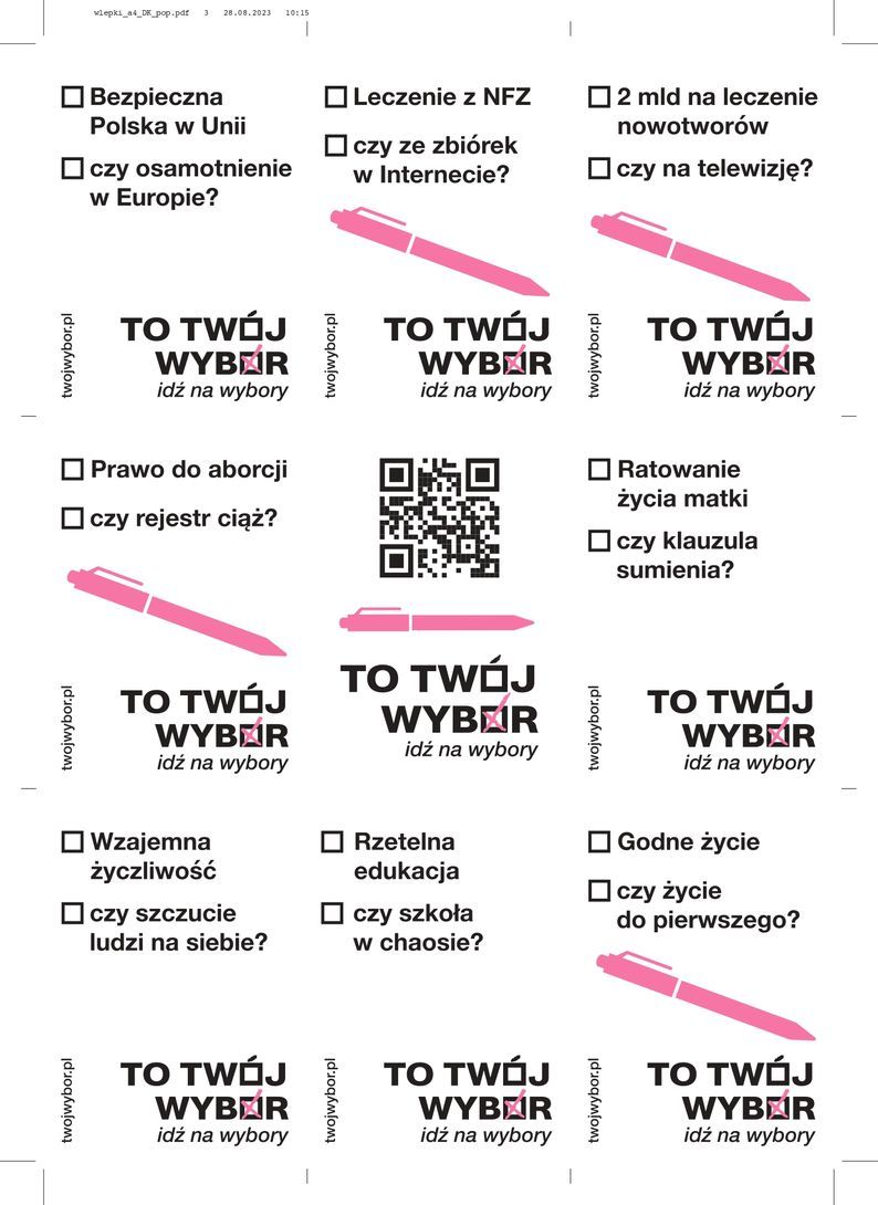 Do aktywnego udziału w nadchodzących wyborach ma przekonać kobiety ruszająca właśnie kampania profrekwencyjna „To Twój Wybór”, zainicjowana przez Inicjatywę Głos Kobiet, grupę organizacji społecznych działających na rzecz ochrony i promocji praw kobiet. Celem kampanii jest uświadomienie kobietom sprawczości i siły ich głosu w wyborach, w kwestiach dla nich fundamentalnych. Kampania prowadzona jest przy wsparciu Fundacji Batorego oraz specjalistów ds. komunikacji, pracujących pro bono.