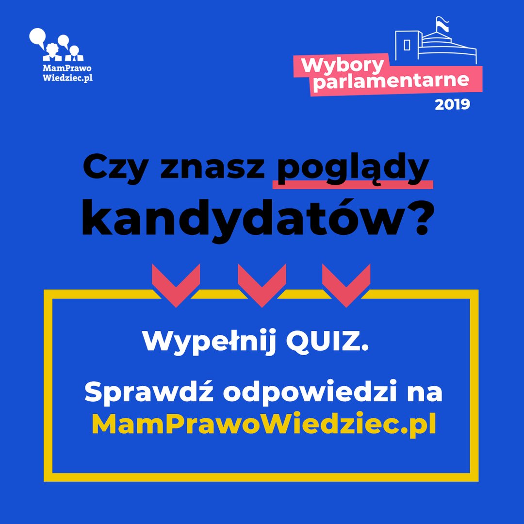 Przed każdymi wyborami MamPrawoWiedziec.pl zaprasza kandydatów niezależnie od nazwy komitetu i miejsca na liście wyborczej do wypełniania przygotowanego przez ekspertów kwestionariusza. Wszystkie odpowiedzi, bez redakcji, wyświetlamy na stronie mamprawowiedziec.pl.