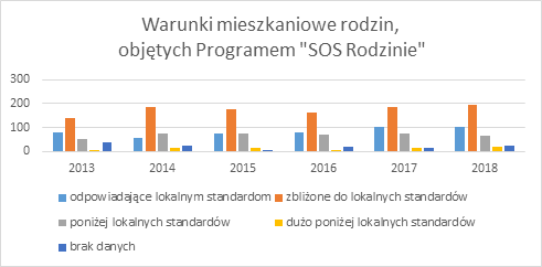 Utrzymująca się na podobnym poziomie liczba osób żyjących w słabych warunkach mieszkaniowych świadczy o potrzebie ciągłego motywowania rodzin do zmiany w różnych dziedzinach życia. Niejednokrotnie to nie ubóstwo, a brak odpowiednich wzorców z rodzin pochodzenia jest przyczyną zaniedbywania gospodarstw domowych.