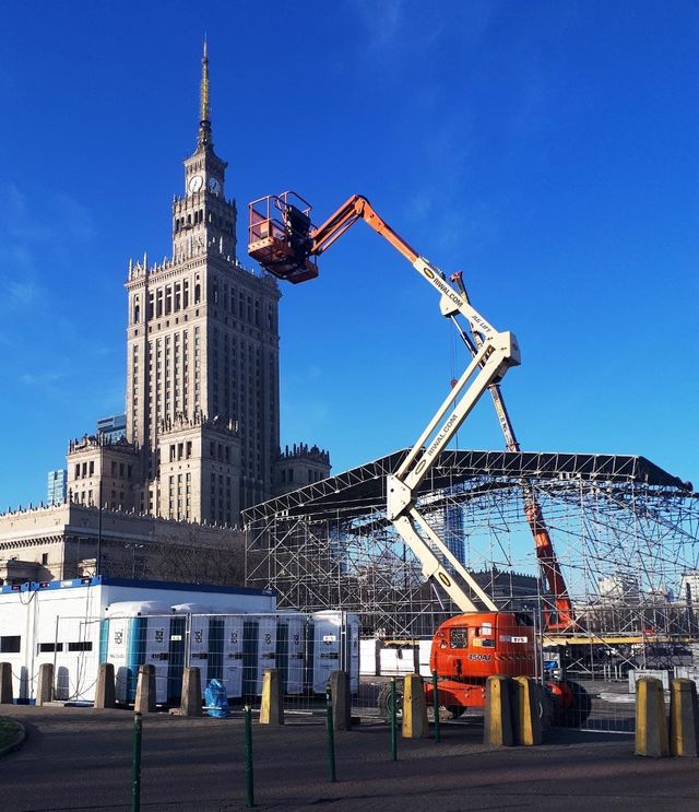 - finał Wielkiej Orkiestry Świątecznej Pomocy już w najbliższą niedzielę. W tym roku WOŚP pozyskuje środki na wsparcie podstawowych oddziałów neonatologicznych, aby wyrównać szanse w leczeniu noworodków. Przed Pałacem Kultury i Nauki w Warszawie trwa budowa Centrum Finału WOŚP, przy której pracują maszyny do bezpiecznej pracy na wysokości firmy Riwal.