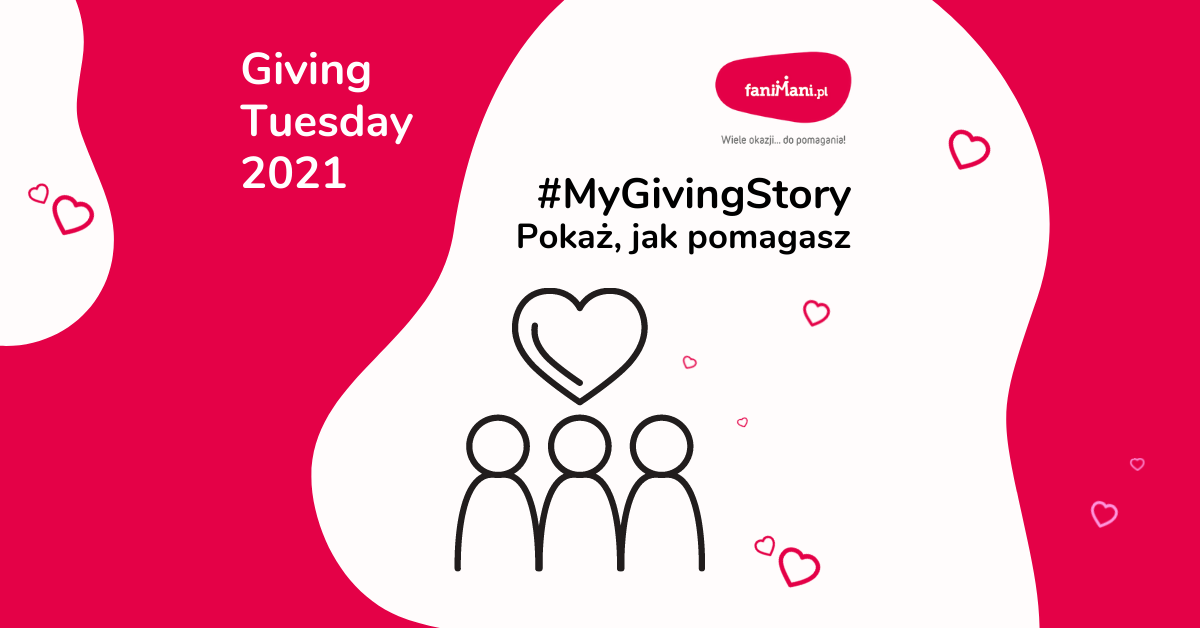 Z okazji Giving Tuesday ludzie na całym świecie dzielą się swoimi historiami w ramach akcji #MyGivingStory. W Polsce też obchodzony jest #GivingTuesday - Światowy Dzień Dobroczynności. Dlatego powstał pomysł na konkurs, w którym najbardziej inspirujące i najciekawsze historie zostaną nagrodzone. Od 1 do 14 grudnia 2021 roku na Facebooku trwa konkurs #MyGivingStory - Pokaż jak pomagasz. Nagrodę może otrzymać każdy, kto pomaga — #GivingTuesday jest świętem pomagania! W Konkursie na uczestników czeka łącznie 6 nagród: