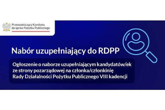 Przewodniczący Komitetu do spraw Pożytku Publicznego ogłosił uzupełniający nabór kandydatów będących przedstawicielami organizacji pozarządowych, związków i porozumień organizacji pozarządowych oraz innych uprawnionych podmiotów wymienionych na członka/ członkinię Rady Działalności Pożytku Publicznego VIII kadencji.