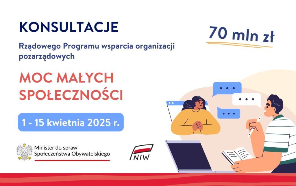 Przewodnicząca Komitetu do spraw Pożytku Publicznego, Minister ds. Społeczeństwa Obywatelskiego Adriana Porowska oraz Narodowy Instytut Wolności zapraszają organizacje pozarządowe do udziału w konsultacjach nowego rządowego programu wsparcia „Moc Małych Społeczności”.