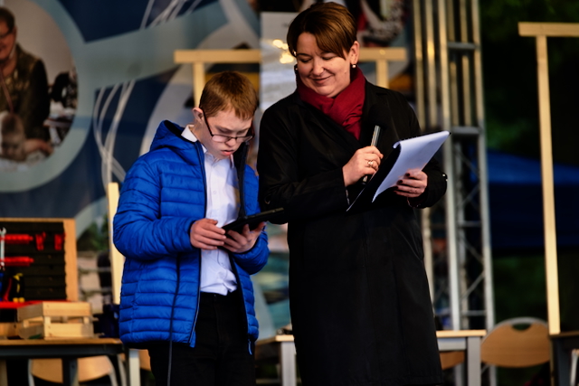 Uroczystość rozpoczęła się wzruszającą częścią artystyczną. Na scenie pojawiła się Dyrektor ds. Nauczania DOR-W Joanna Broniecka, która wraz z uczniem Miłoszem – komunikującym się za pomocą specjalnego komunikatora – przywitała wszystkich gości i zaprosiła do wspólnego świętowania.