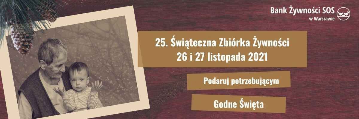 Bank Żywności SOS w Warszawie z radością powraca do Świątecznej Zbiórki Żywności, która ze względu na pandemię, nie mogła zostać przeprowadzona w stacjonarnej formie w zeszłym roku. Przed nami 25. edycja tego niezwykłego wydarzenia, w którym będzie można wziąć udział w dniach 26–27 listopada w Warszawie i okolicy. Zebrane jedzenie trafi do osób najuboższych jeszcze przed Świętami Bożego Narodzenia. Do zbiórki może przyłączyć się każdy!
