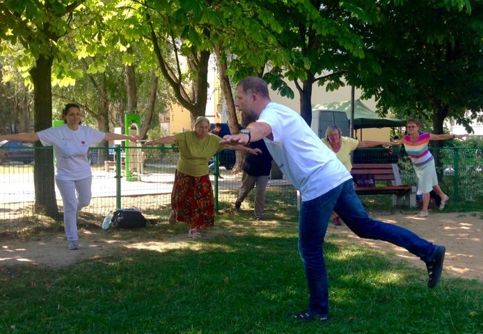 - a ćwiczenia rozwijające sensomotorykę i równowagę poprowadził, na terenie zielonym przy ul. Bacewiczówny 5, Dariusz Straszewski, fizjoterapeuta (m.in. Anity Włodarczyk).