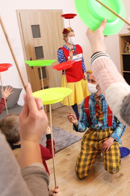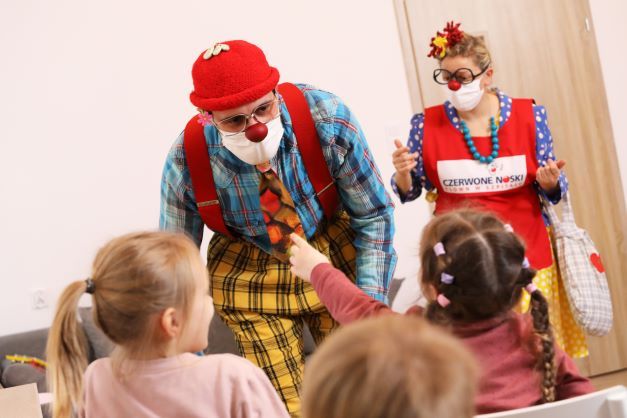 Klowni medyczni Czerwonych Nosków już pracują z dziećmi ukraińskich imigrantów nad uwolnieniem tej energii. Jak? W najbardziej przystępny dla nich sposób: poprzez zabawę, klownadę, terapię humorem.