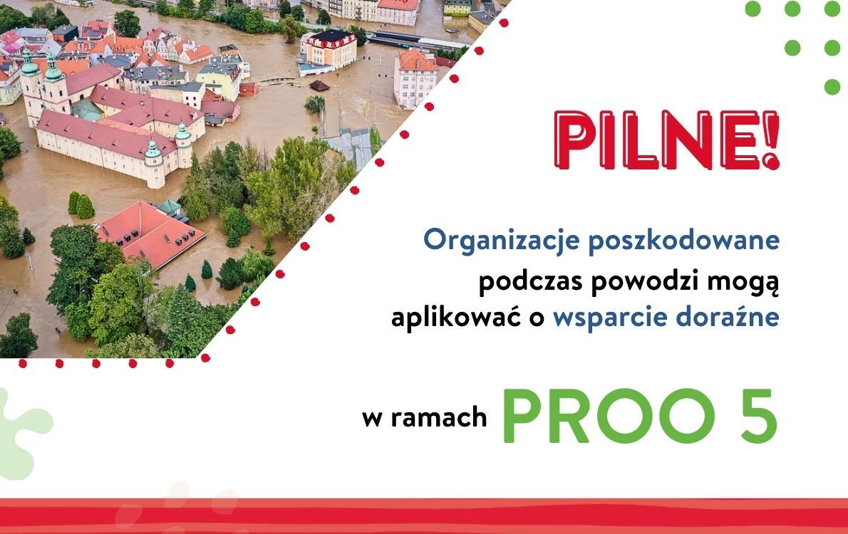 W Rządowym Programie Rozwoju Organizacji Obywatelskich PROO 5 została uruchomiona nowa ścieżka, która umożliwia składanie wniosków na pokrycie wydatków wynikających z potrzeb organizacji poszkodowanych w wyniku powodzi i trąb powietrznych we wrześniu 2024 r.