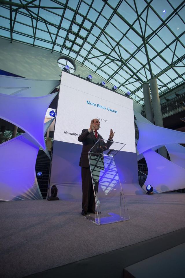 Spotkanie z wiceprezesem Google rozpoczęło słowo wstępne dr hab. Marcina Pałysa, rektora UW. Potwierdził on, że uniwersytet i Google rozpoczęły współpracę, która w długofalowym zakresie ma przynieść określanie zakresu wpływu internetu na społeczeństwo czy politykę. – Może to przynieść ciekawe wyniki dla społeczeństwa i gospodarki. To początek, mam nadzieję, owocnej współpracy – podkreślał Pałys. Przy okazji „ojciec internetu” przypomniał nieco historię sieci i co ciekawsze nakreślił perspektywy jej dalszego rozwoju. A jak rysują się te perspektywy w wizji Vinta Cerfa?